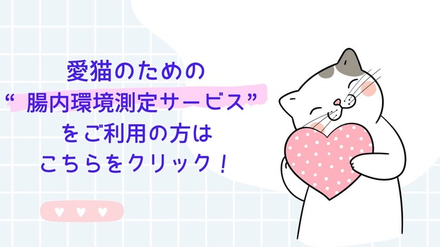 下記説明を全て読んでいただいた上で、本サービスをご利用ください。 新商品「おなかの通信簿」は、愛猫の腸内環境を測定する革新的なサービスです。 こちらのサービスは”獣医師からアドバイス「腸内環境を整えるために」 で取り上げている細菌の色調、形態、大きさなどから 菌の種類を推定しています。(*さらに詳しい細菌類の解析、あるいは機能について知りたい場合は他社サービスをご利用ください。) 結果も1〜2週間以内とすぐにわかるためリアルタイムでの結果を お届けすることが可能です。 また、検体を送るだけと簡便さにもこだわっていますのでどなたでも簡単にご利用いただけます。 (ご利用の際の注意事項) ✅当報告書は診断や医療行為ではありません。あくまでもデータとしてご活用ください。 ✅ご提供いただいた検体が解析に不足する際などは再度、ご提供をお願いする場合があります。 ✅解析結果は研究あるいは業務用途の目的で、ホームページ上あるいは、報告書内データとして使用させていただく場合があります。 (※個人情報の使用は致しません) ✅腸内環境についての研究は進行途中です。現時点での論文報告などに基づいて菌の特徴などを記載しております。